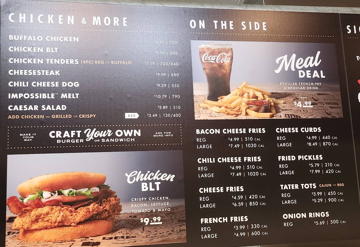 Traveling through and stopped for a burger. Got the bourbon burger meal. Burger was REALLY good. Meat cooked perfectly, cheese melted well and onion ring was really nice on it. Their bourbon sauce was really mustardy but I like mustard so I really liked it and ate it with my fries. Don’t love the machine thing asking for a tip but in terms of the food I really enjoyed it!